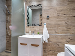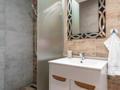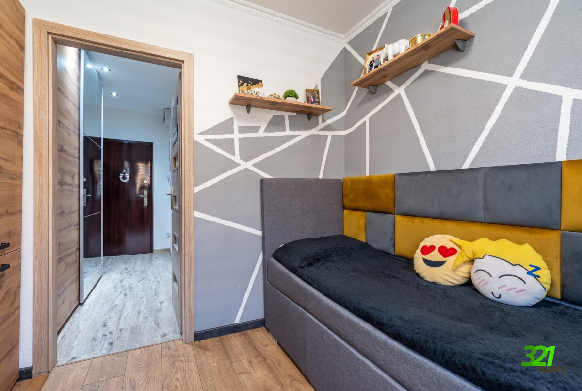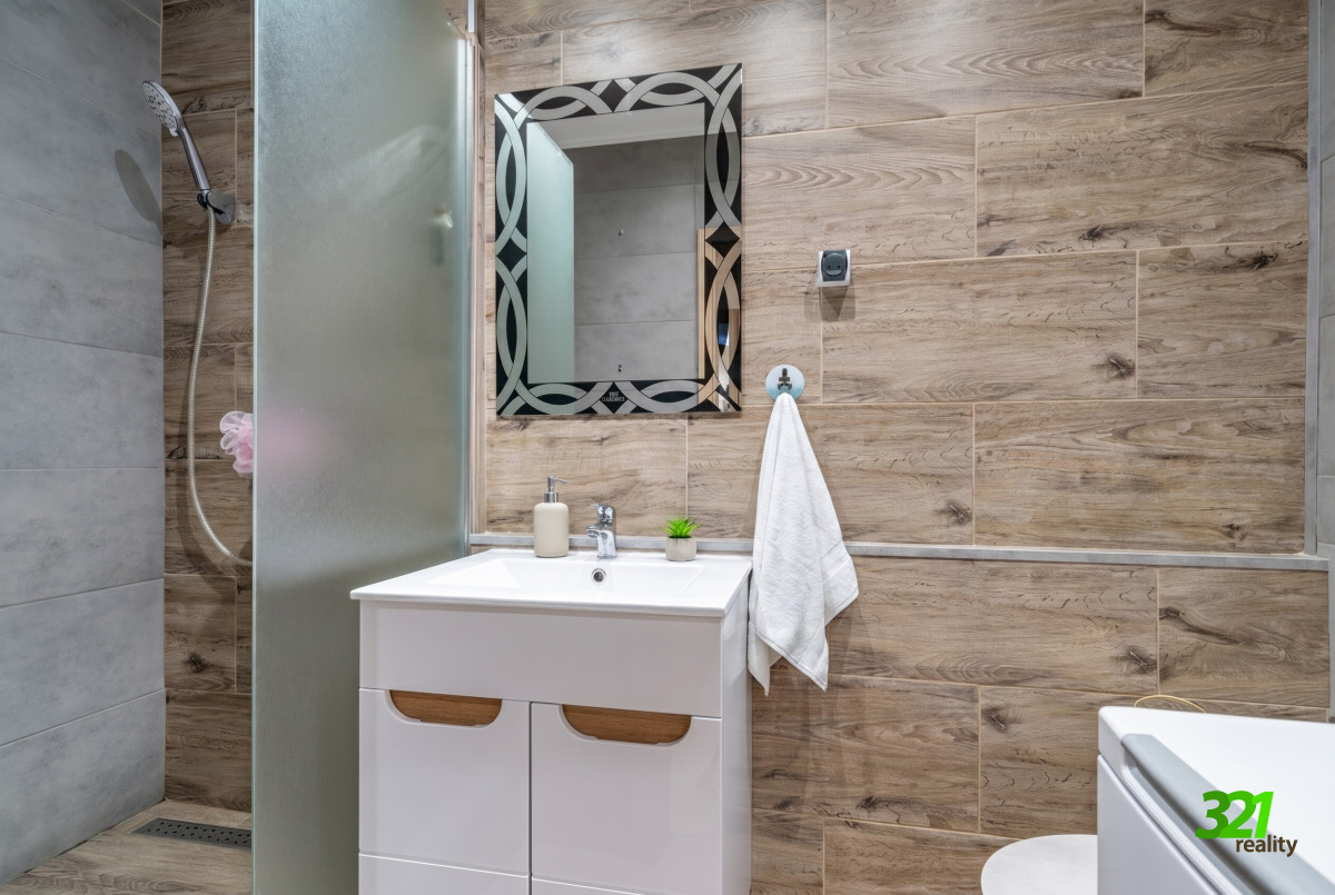 Šikovná zmena dispozície bytu je prirodzene účelná, čo prináša súkromie aj dobré rozloženie dennej a nočnej časti bytu. K tomu je moderne zrekonštruovaná KÚPEĽŇA s moderným sprchovacím kútom s odtokovým žľabom, priestor na práčku a toaletu.