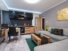 OBÝVACIA IZBA je vkusne zariadená / gaučová súprava, nábytok, TV, konferenčný stôl , jedálenský stôl /,